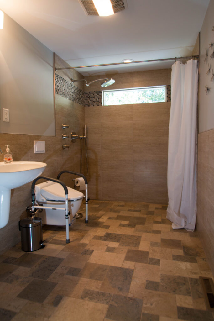 - Walk-In Showers: Curbless or low-threshold showers prevent tripping. Include a built-in seat for resting.